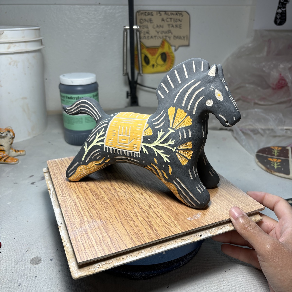 This one was interesting because it's the first time I've tried combining two different clay bodies together, and it turned out beautifully! And I love her little matching wolf mask.
