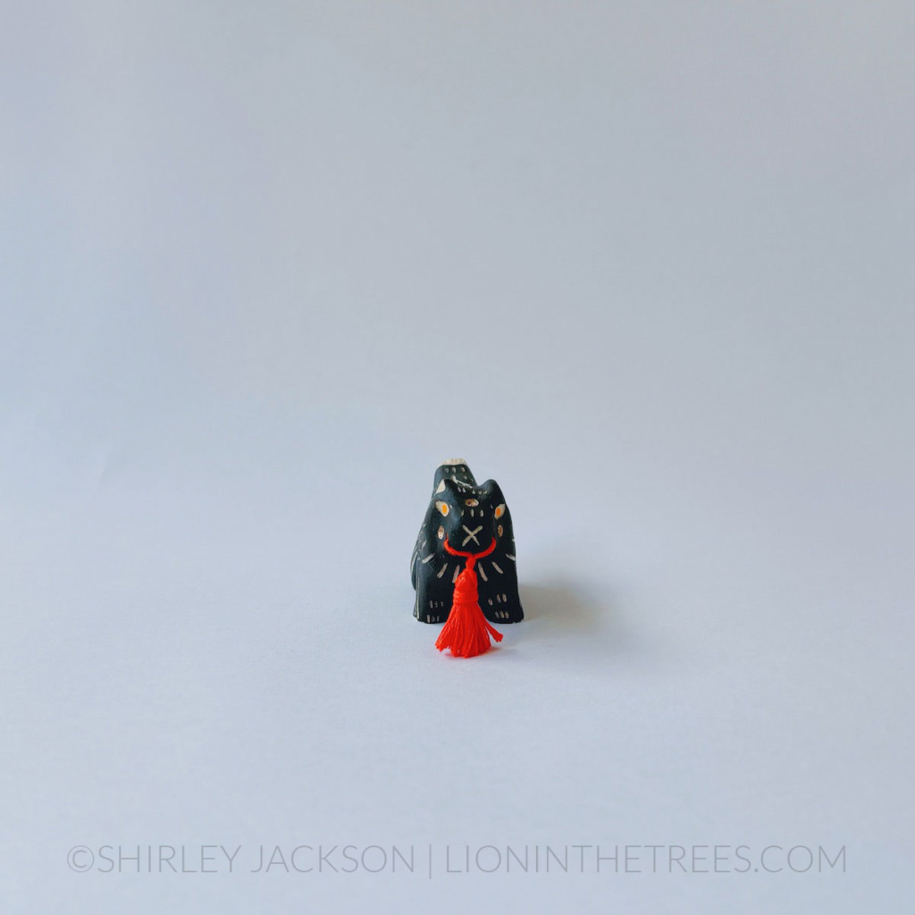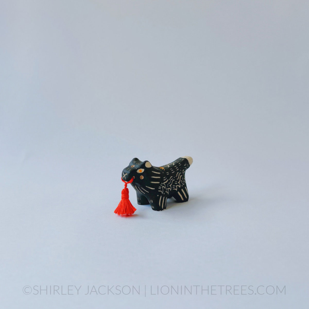 I love how they have this big red tassel hanging in their mouth like they want to be just like some of the bigger sculptures.