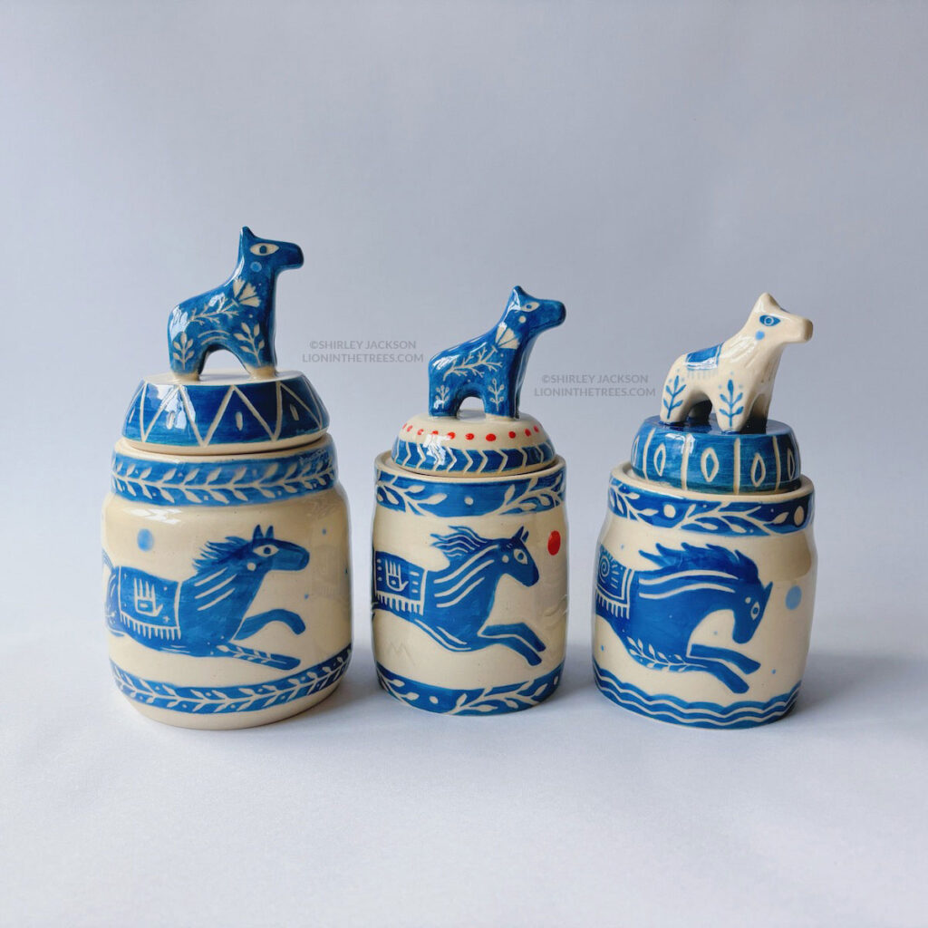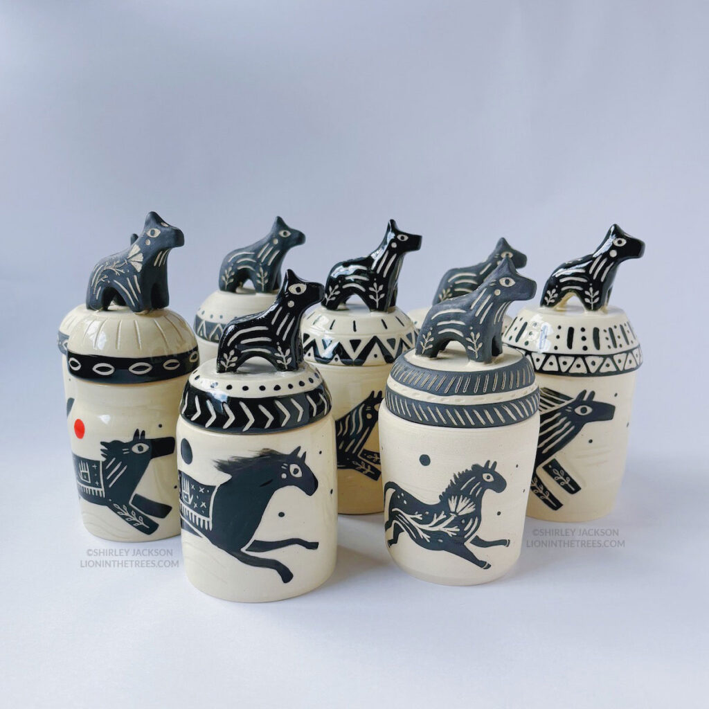 Here's a look at the Year of the Horse jars I made for QCCC members as a test run for these shop ones: