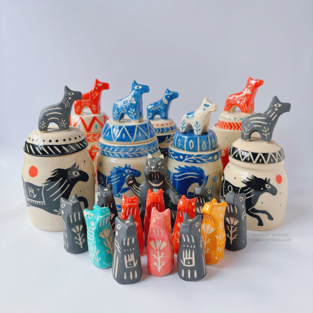 2026 is the Year of the Horse and I've made LIDDED memory jars, horse totems, and a Wave Wolf somehow snuck into the celebrations as well.